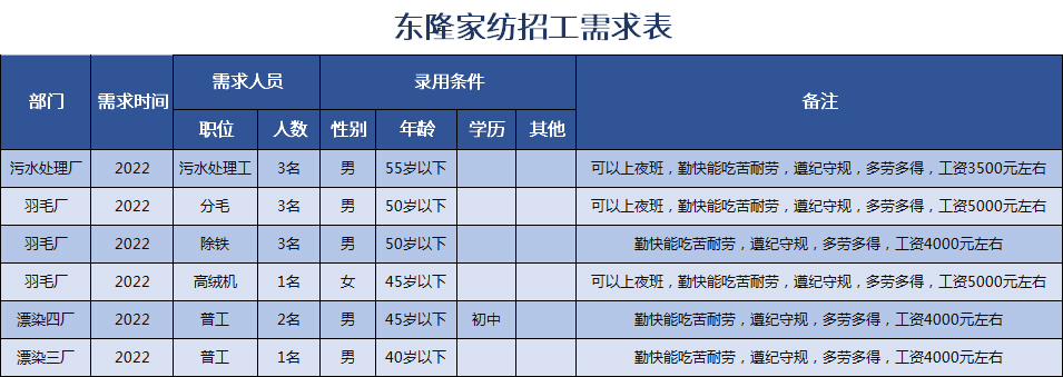 報名地點:東隆家紡股份有限公司總廠辦公室(無為市羽毛羽絨產業園)